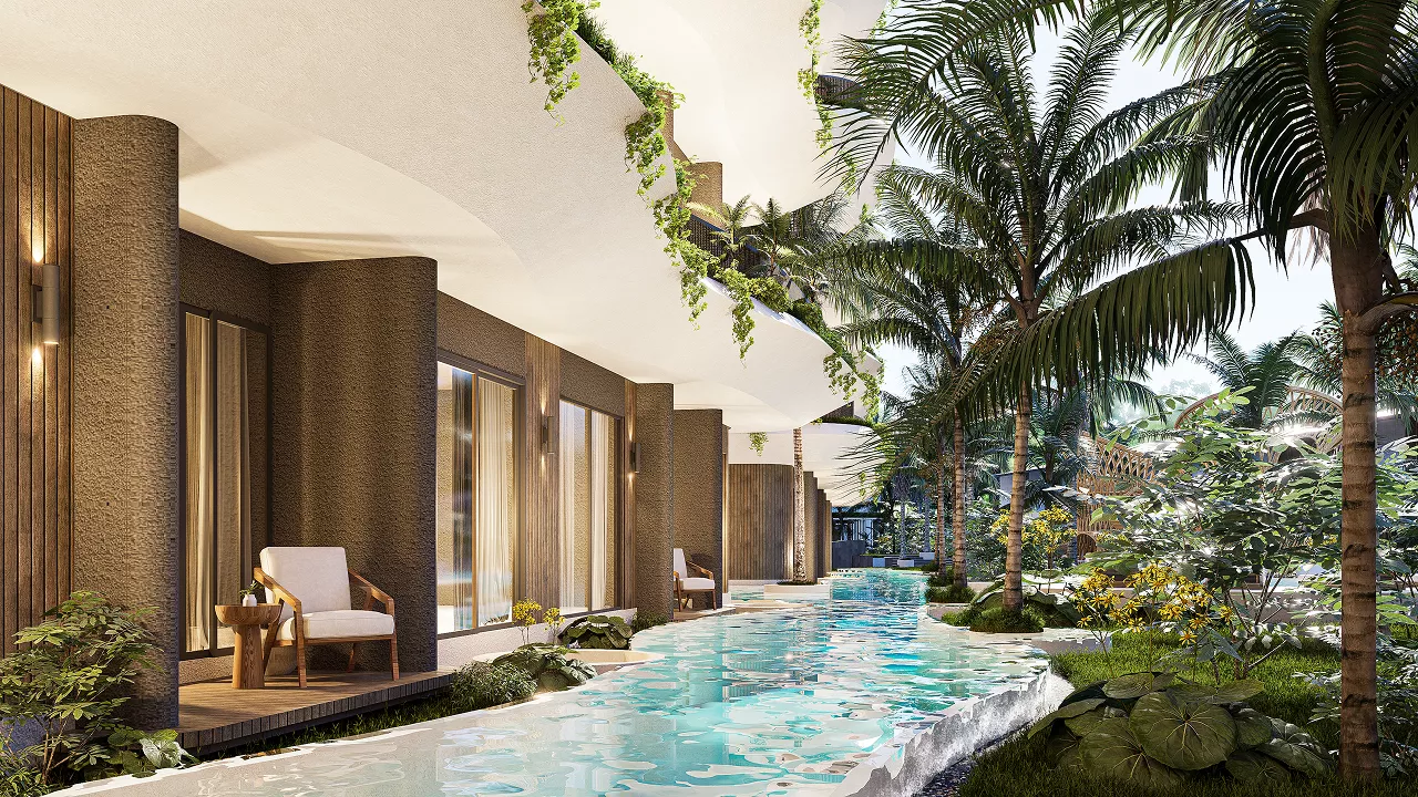 Anjuna Bay is designed for those who value sustainability, with walkable street that connect you to nature while minimizing your environmental footprint. Surrounded by lush tropical gardens, vibrant communal spaces that create welcoming environment for families, friends, and individual of all ages.